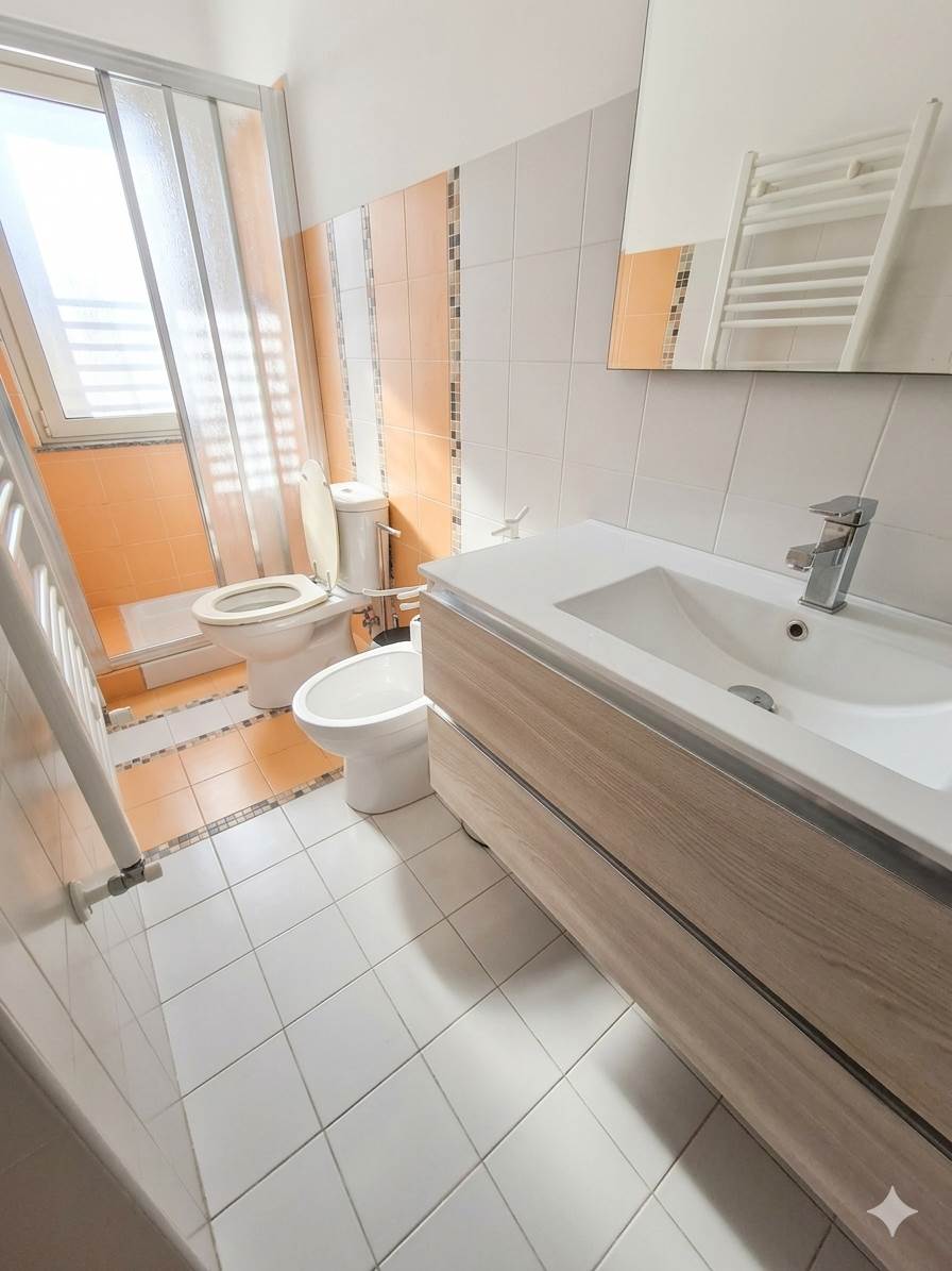 L'Appartamento è dotato di rifiniture di ottimo livello, infissi in vetrocamera e taglio termico, caldaia e radiatori, climatizzato, eleganti altri dettagli e rifiniture interni, porta di accesso blindata. Compreso nel prezzo comodo garage di 21 mq.