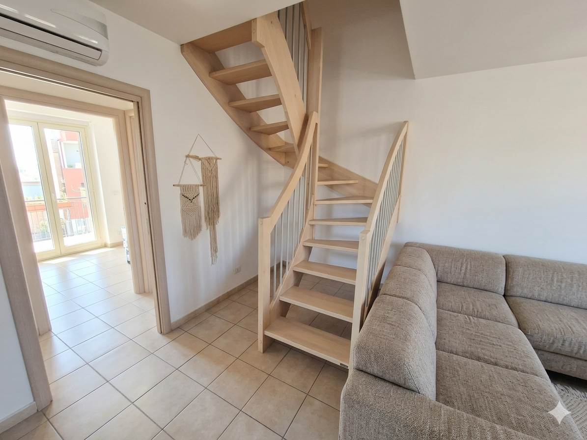 Scopri questo elegante appartamento su due livelli, situato nel cuore di Giarre, nella tranquilla zona di Trepunti, in zona residenziale gradevole molto tranquilla e lontana dal traffico servita da scuole e servizi commerciali vari, e a soli 500 mt dal casello autostradale di Giarre. L'appartamento si sviluppa su due livelli, con una superficie totale di 105 mq circa ed è dotato di un bellissimo terrazzo panoramico di 22 mq circa, si presenta in ottime condizioni generali, super rifinito ed accessoriato. Al piano primo ampio soggiorno all’ingresso con cucina abitabile divisa da porta scorrevole, due camerette, bagno e lavanderia, ampi balconi lungo il perimetro dell’immobile; il piano secondo mansardato, raggiungibile mediante elegante scala interna in legno e con predisposizione di un altro ingresso direttamente dal vano scala condominiale, è composto da camera da letto principale, cameretta, bagno, terrazzino panoramico.