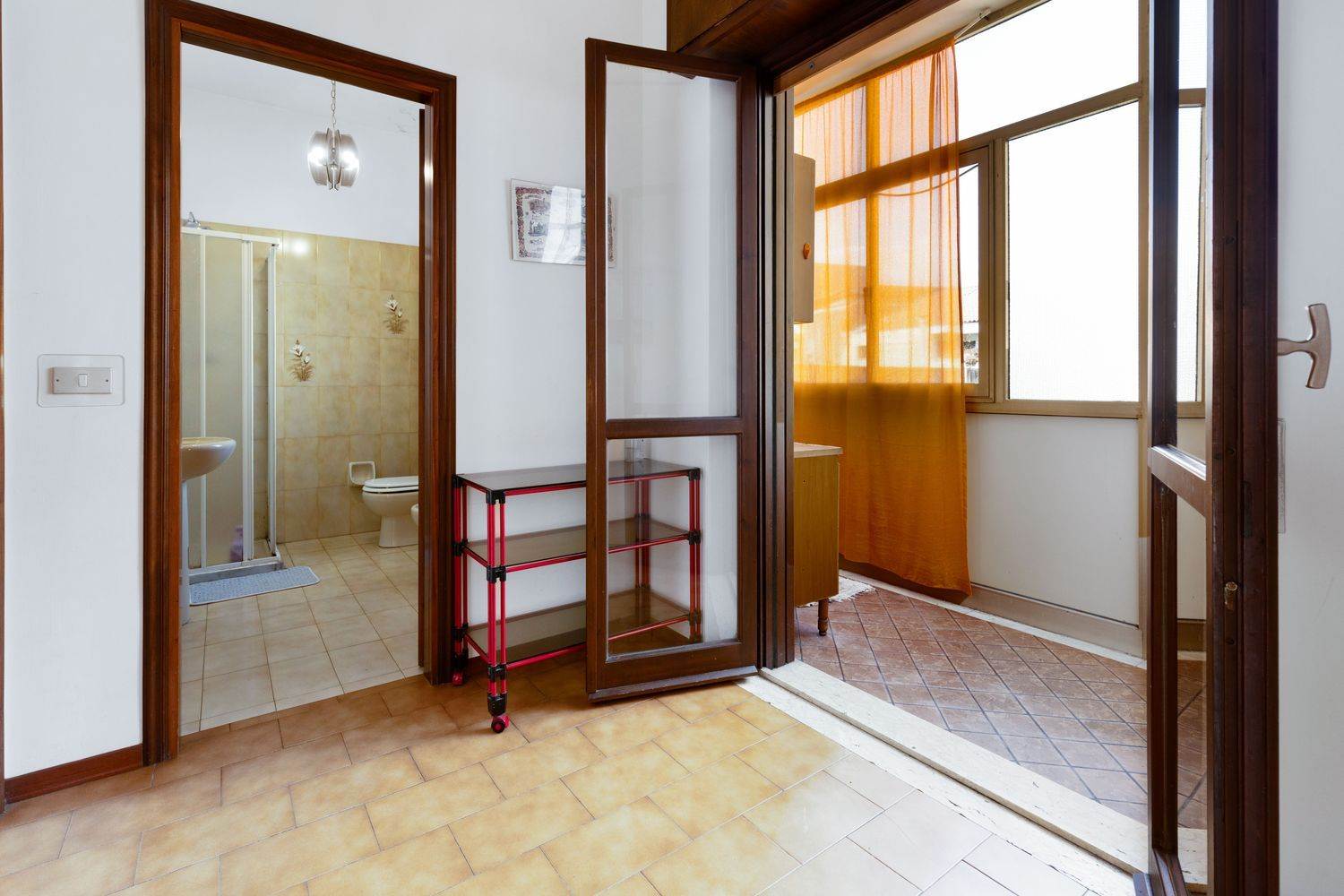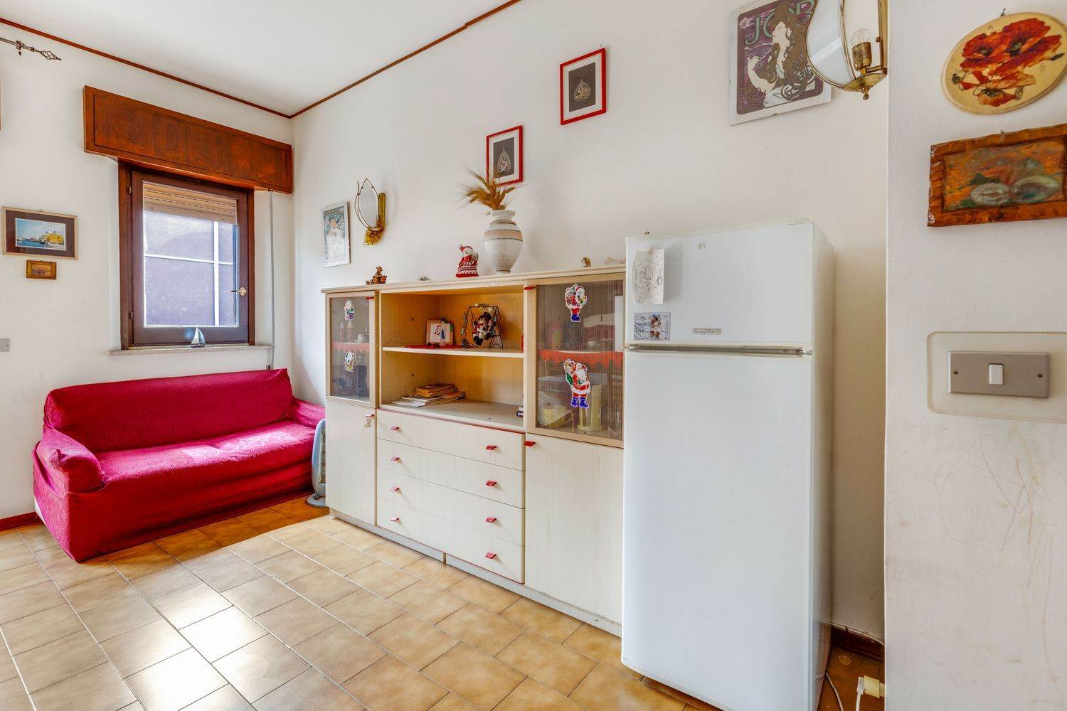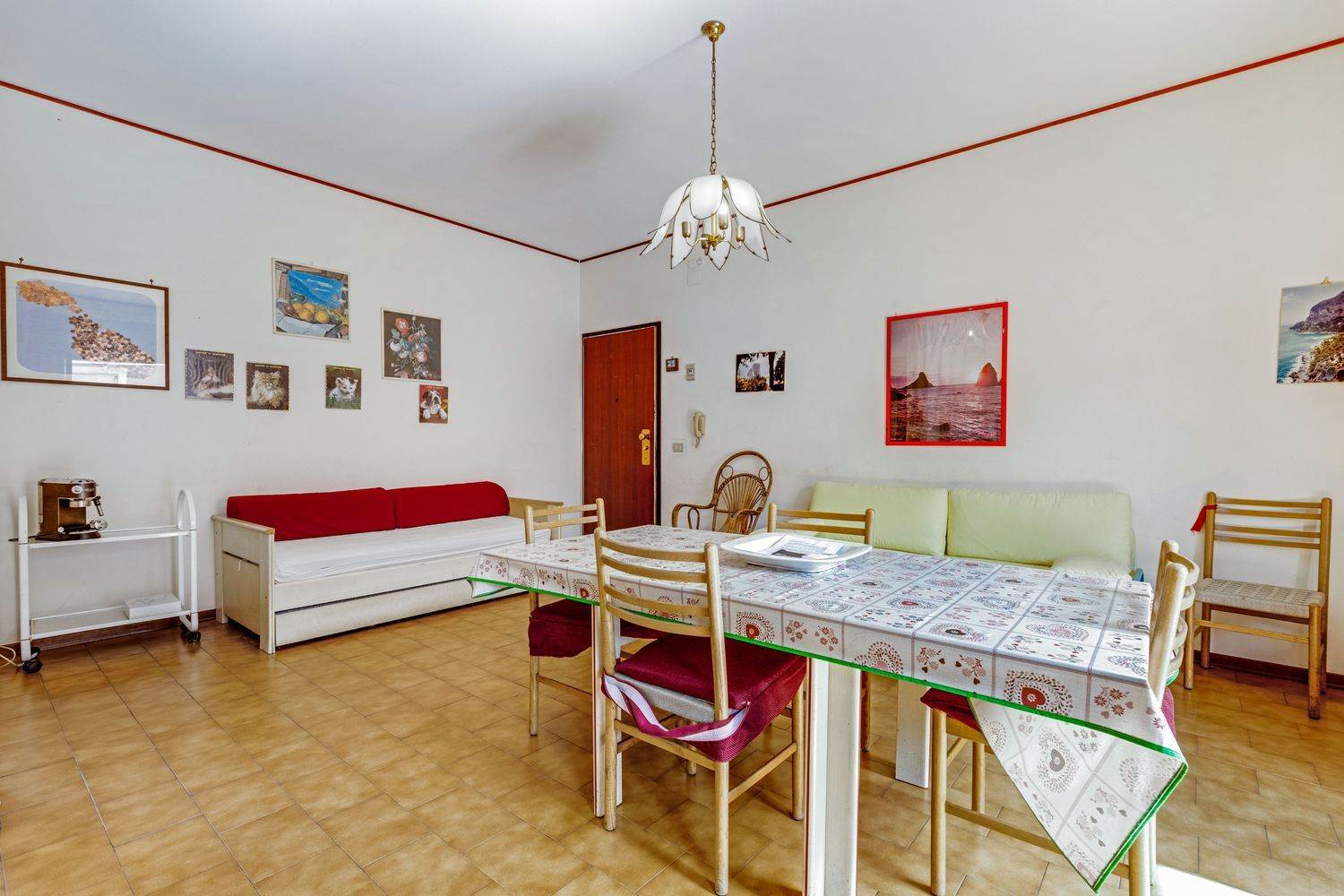 L’ampio salone d’ingresso con angolo cottura, un vano e mezzo, dotato di finestra e porta finestrata che accede a un comodo balcone con vista mare, può ospitare un divano letto e una zona attrezzata con letto a castello, il tutto si apre su un disimpegno che conduce a una zona verandata ed alla camera da letto che è molto spaziosa, il bagno ampio e funzionale.