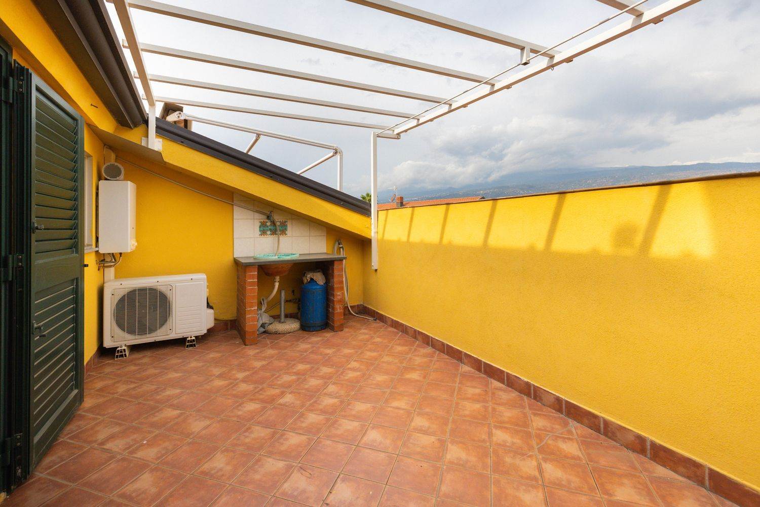 L'immobile si trova all'interno del condominio Antigua, che offre ai condomini l'uso esclusivo di piscina, zona giochi ed anfiteatro. Situato al terzo piano con ascensore, l'appartamento è composto da un luminoso soggiorno con angolo cottura, una camera matrimoniale, un bagno, un ripostiglio ed un ampio terrazzino con splendida vista sull'Etna.